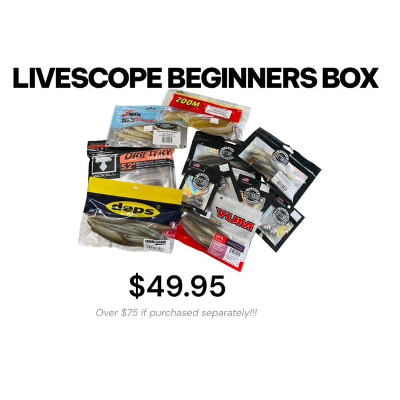 LIVESCOPE BEGINNERS BOX Your starter kit for Scoping, valued over $75 DEPS Sakamata 6" #96 Wakasagi Zoom Winged Fluke 6.5" Z-Man Scented Jerk Shadz 5" Jackall Drift Fry 5.2" YUM FF Sonar Minnow 5" STC Sona Shad 4.25" STC Sniper Shad Pro Series 5.25" STC So