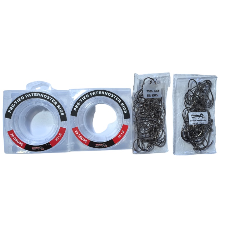 Built for tough conditions and powerful fish, the MasterPro 40lb Pre-Tied Paternoster Rigs are ready for action straight from the spool.This set includes 2 spools, each with 5 complete paternoster rigs (20 drops per spool). Every rig is professionally tied
