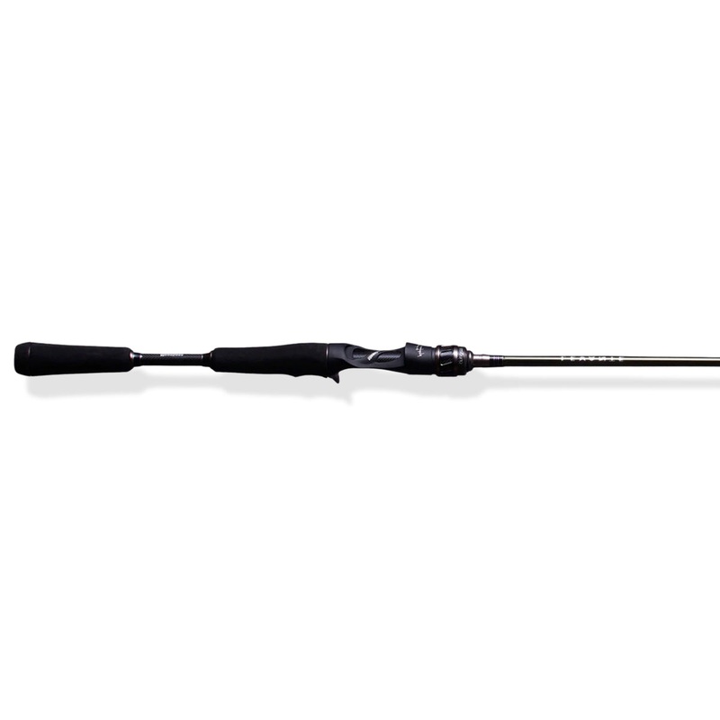7’5″, Medium+, moderate-fast action. Made for long-range casting of treble-hooked baits. Hooksetting strength with just enough give for secure fish control.