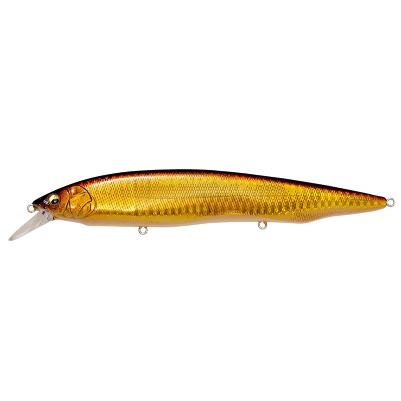In spite of its large size body, the lure has very light reeling resistance, which allows the angler to search the area at a good tempo. On a straight retrieve, it has a high pitch roll action with flickering appeal. The slim, flat-sided format, which has been shaped to the utmost limit, and the built-in tungsten triple oscillating system allow the lure to be cast super long, even in headwinds. The KANATA SW is a specially tuned SW model to tempt monster fish that prey on large baits.