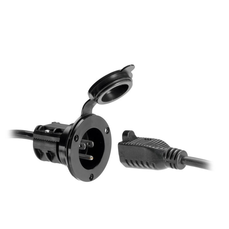 This convenient adapter allows quick thru-hull connections to an AC extension cord with no cutting or splicing required using the male AC plug from any of our chargers. The watertight cover and gasket prevent corrosion on the AC plug when it isnt in use.