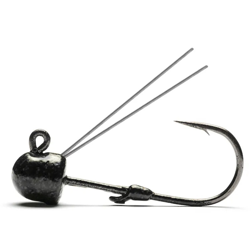 Mustad's proven Ned Head style jig head features two coated wired weedguards to deflect brush, rocks, and vegetation and prevent hang-ups when fishing cover. With an ultra-sharp 2X strong UltraPoint hook and a double coated Grip-Pin keeper to keep plastics