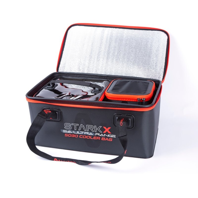 This large StarkX EVA Cooler Bag is designed to hold multiple Air- and Ventilation Bait Bowls, tubs, Tray Systems and tackle items. The bag is very versatile, whether as a cooler or tackle bag. Manufactured using strong and perfectly welded EVA materials a