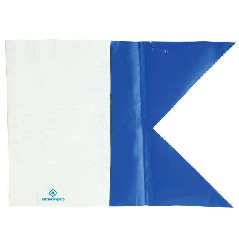 The Ocean Pro Dive Flag is a PVC blue and white dive flag. The dive flags must be used when diving to let people know that you are in or under the water in that area and other boat operators must slow down to avoid any accidents.The Australian diving flag