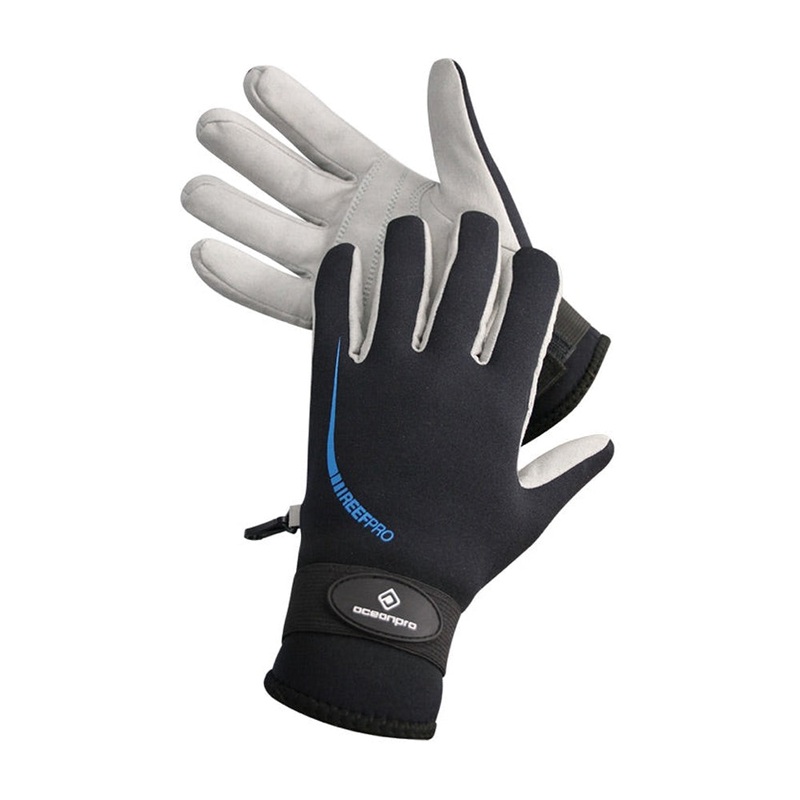 The Reef Pro Gloves feature a combination of 2mm neoprene upper and a soft Amara palm to provide a high degree of protection, wear & resistance and dexterity. The Ocean Pro Reef Pro Dive Gloves come equipped with a velcro wrist strap for a secure fit and p