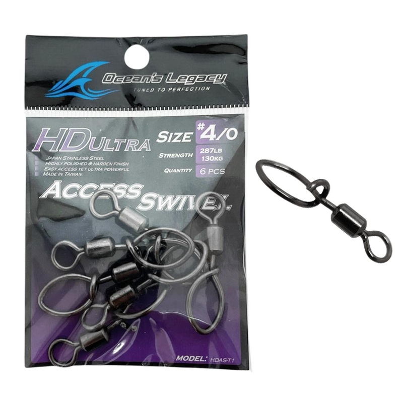 The Oceans Legacy HD Ultra Access Swivels are a high-quality swivel designed to make changing lures and rigs faster and easier without the need for split ring pliers or tieing knots every time you want to change your tackle. Constructed from Japanese stain