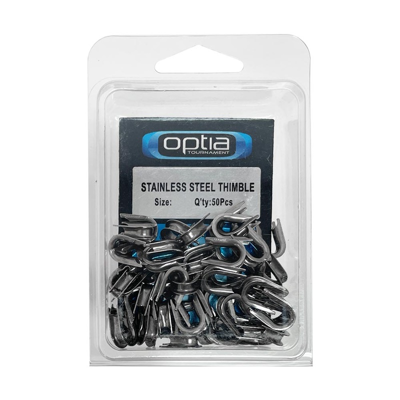 Thimbles protect your monofilament line from abrasion while allowing hooks and swivels to move freely. The Optia Stainless Steel Thimbles are available in both small and medium sizes.