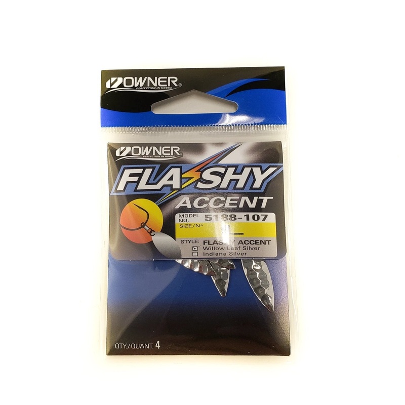 The perfect accessory to compliment ALL bait and hook presentations. Rig over a hook point and onto the shank of virtually any fishing rig to create additional flash with live or artificial baits. Texas rigs, Carolina rigs, wacky rigs, dropshot rigs. they all stand to illicit more strikes with the Flashy Accent. Perfect for both freshwater and saltwater applications. Every piece includes clear shrink-tube pre-rigged over the split ring eye to secure this accessory on hook shanks.