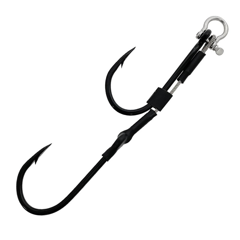 The Owner JobuTwin Hook Shackle Rigs are a high quality, heavy duty game fishing rig designed for chasing marlin, tuna and other big game fishing species. Built on the famous Owner Jobu Big Game hooks, which feature an extra-heavy 4X-strong forged shank, a