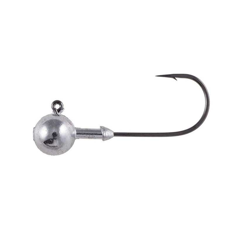 Features: The Owner Ultrahead Round Jig Head is a ball shaped lead weight molded around a light wire, round bend jig hook. Owner Super Needle Point Jig Hook for easy penetration and holding power. Round bend for better hook sets. Super hard black matte fin