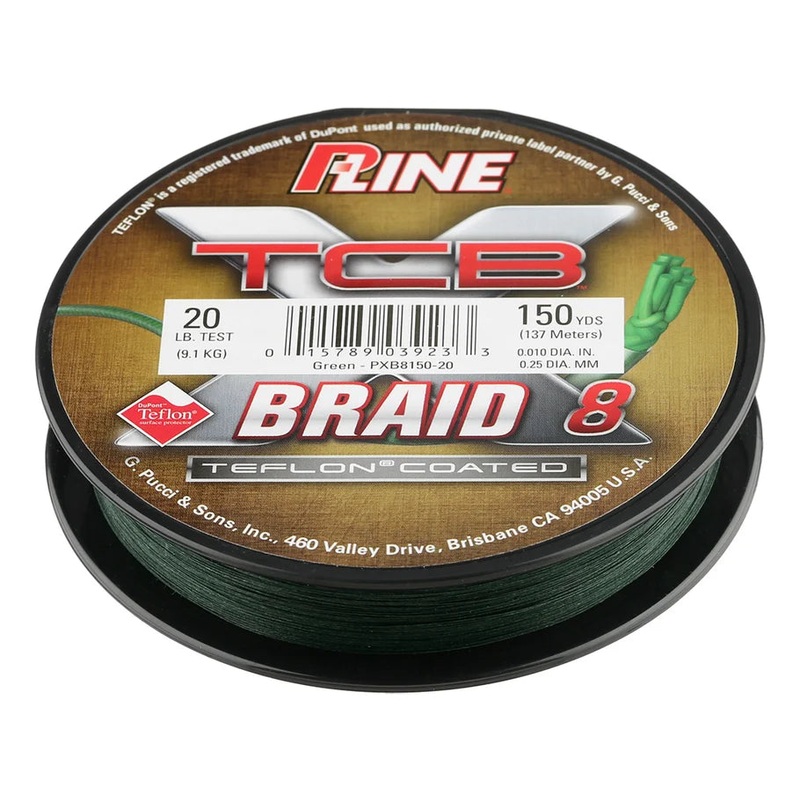 Constructed with a tight 8-fiber weave, theP-Line TCB 8 Teflon Coated 8-Carrier Braided Linefeatures a cutting-edge Dupont Teflon coating that gives it the smoothest surface of any braid on the market. Delivering advanced performance, the P-Line TCB 8 Teflon Coated 8-Carrier Braided Line flies through guides to give anglers more accuracy and more distance on casts.