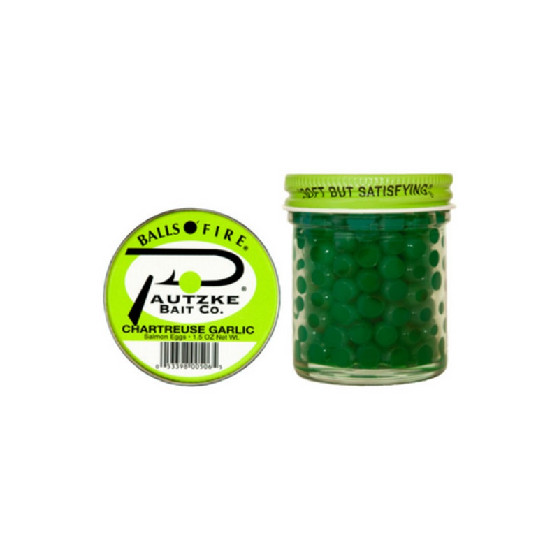 WARNING:Prop 65Cancer and Reproductive Harm Chartreuse Garlic is a combination of our popular Premium Balls o Fire egg and is packed with a powerful garlic scent. The chartreuse is a used as a visual stimulant, whereas the garlic smell draws trout in for a