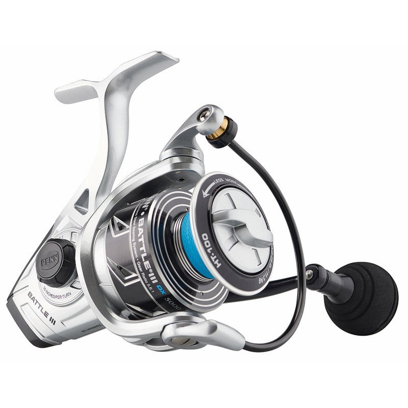 Penn Battle III DX Spinning Reels are built tough to withstand whatever the saltwater angler puts these reels through. The Battle III DX reels are more powerful than the previous Battle III spinning reels. Brass main gears are in every size along with an improved HT-100 drag system. Transfer more power through the gears to your big catch on the other end of the line with oversized EVA handle knobs.