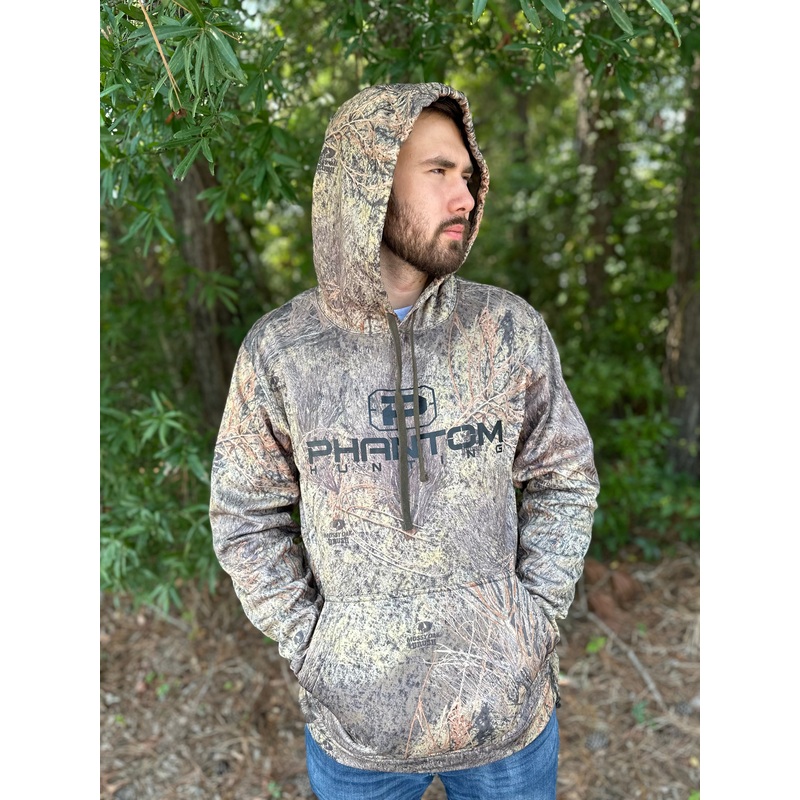 - 100% polyester, 7.0 ounce- Water repellent treatment- Breathable, moisture managing- Fresh assurance with anti-bacterial treatment- UV Protection- Fully converseamed- Dyed-to-match drawcord- Front pouch pocket
