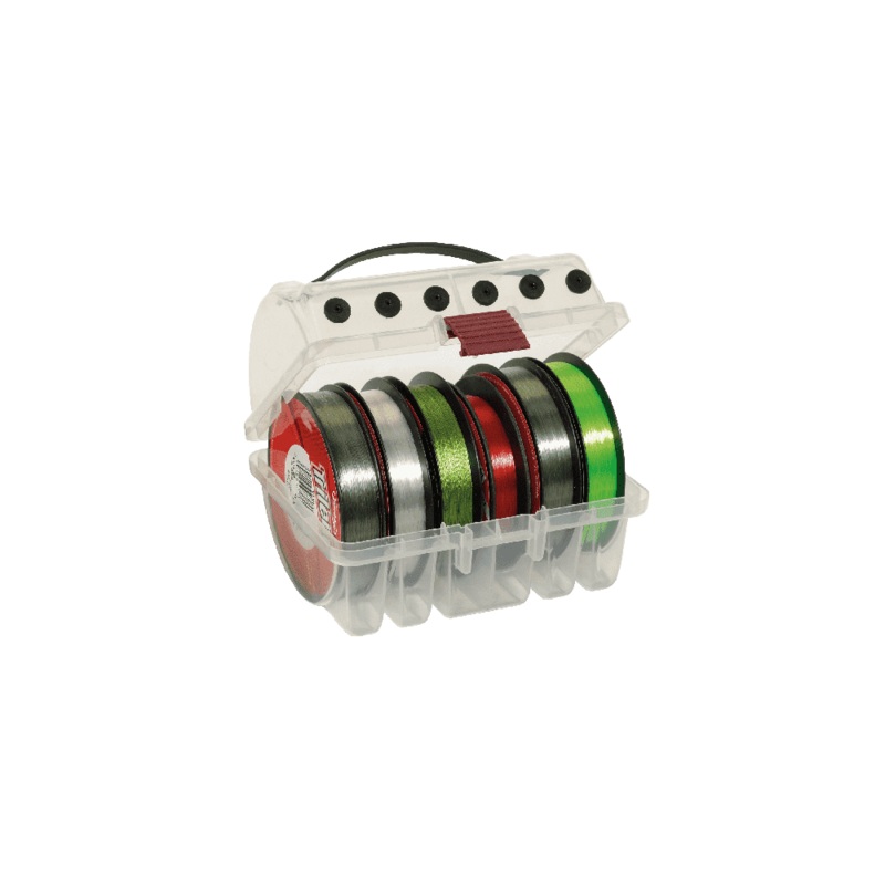 Plano ProLatch Line Spool Box Holds 6 spools of fishing line up to 1 in. wide Lines easily transfer to reels through rubber holes in lid Secure ProLatchclosure Transparent for quick and easy identification of contents Convenient carry handle Keep lines tan
