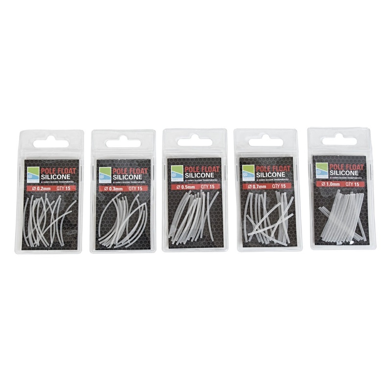 A selection of high quality silicone in five popular sizes specifically designed for attaching pole floats when making rigs. Robust and easy to use with a strong 0.5mm wall diameter pre-cut in 40mm lengths. Ideal for carbon, wire and fibreglass stems.