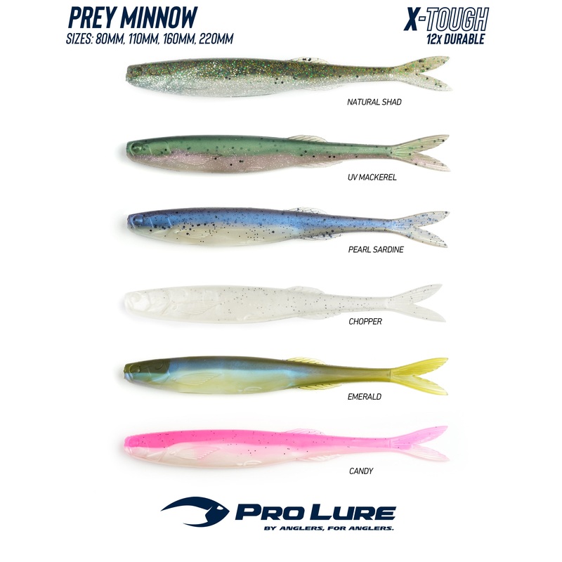 PRO LURE PREY MINNOW X-TOUGH|Pearl Sardine|Candy|Emerald|Chopper|UV Mackeral|Natural Shad|80mm|110mm|150mm|220mm
