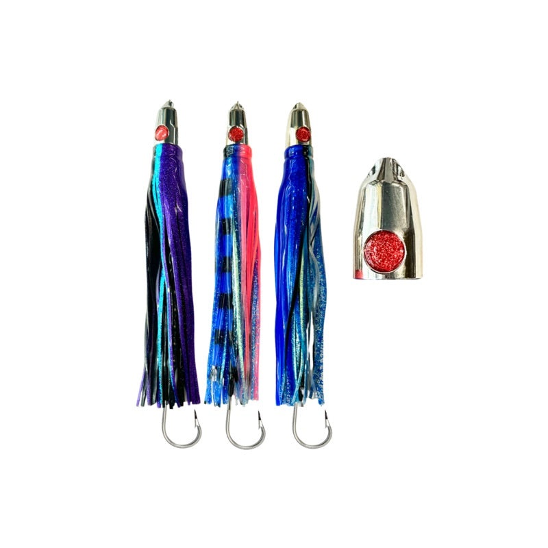 RJ won the Bahama Wahoo Tournament and placed in several more while using only this lure aboard the Concrete Machine. It can be trolled up to 16knots. Rigged with a 10/0 7691S stainless hook and 6 feet of 480lb cable.