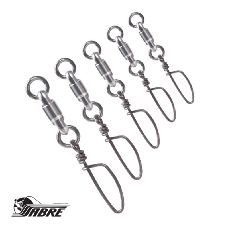 Sabre Stainless Super Snapsare a high-quality, super-strength, ball-bearing tournament snap swivel designed for hardcore tournament gamefishing!The streamlined, 100% Stainless Steel ball-bearing torpedo swivel features double welded rings and is matched wi