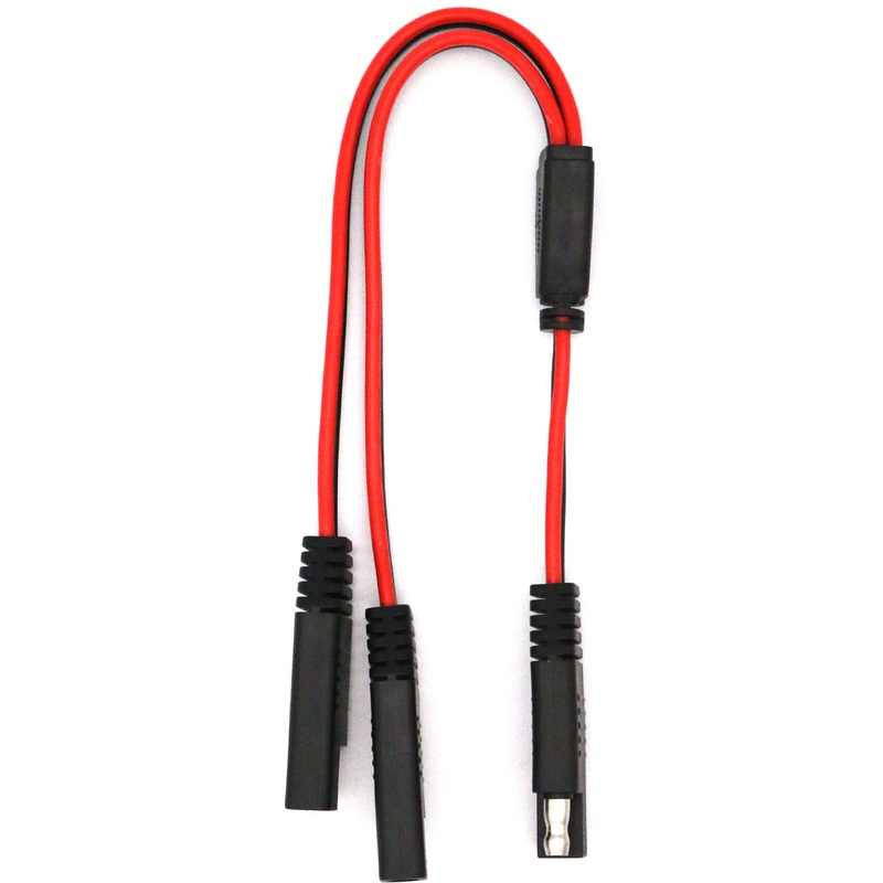 The SAE Power Cable Y-Splitter is a 2-wire polarized electrical connector with a two-prong plug and socket connector. This cable is polarized to ensure proper connection of circuits, reducing the chances of reverse polarity. This cable also includes color-