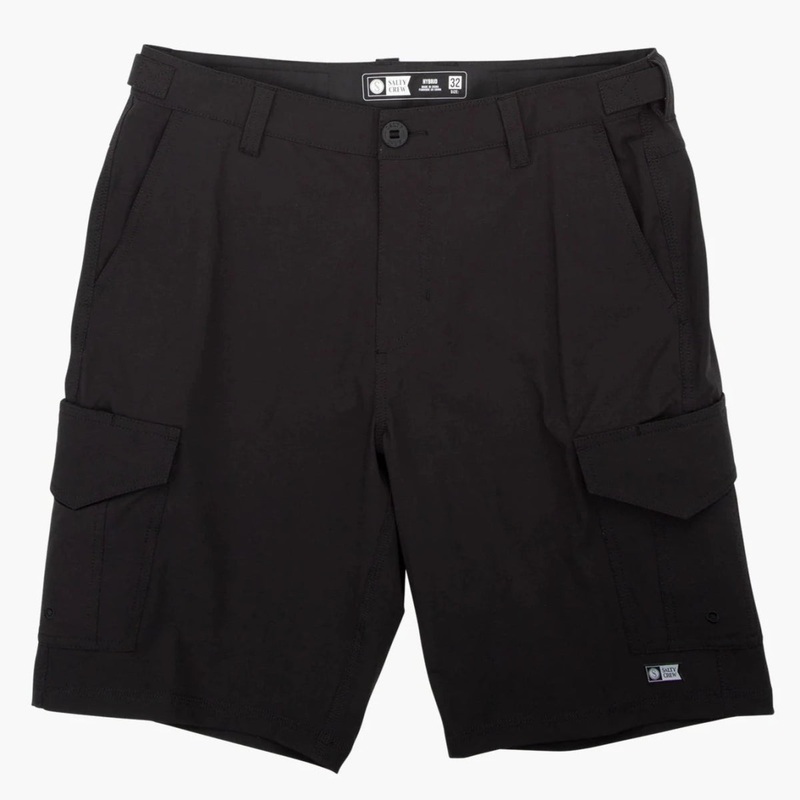 Salty Crew Deep Sea II Black Cargo Shorts are a standard fit men's utility shorts + Four-way stretch with a soft hand feel and stain-resistant Teflon coating +Dual cargo pockets and rear pockets with velcro closure +Heavy denier lined utility pocket + lock