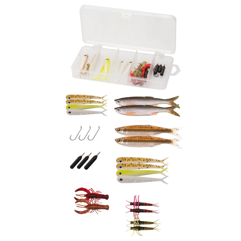 Savage Gear's Dropshot Pro Pack Kit. Contains 22 pieces of various accessories and lures.Great kit for predator fish - a perfect variety of soft lures to fool these great creatures!The kit contains: 2 x Bleak Real Tail (8 cm) 4 x Dying Minnow (6 cm) 4 x Dy