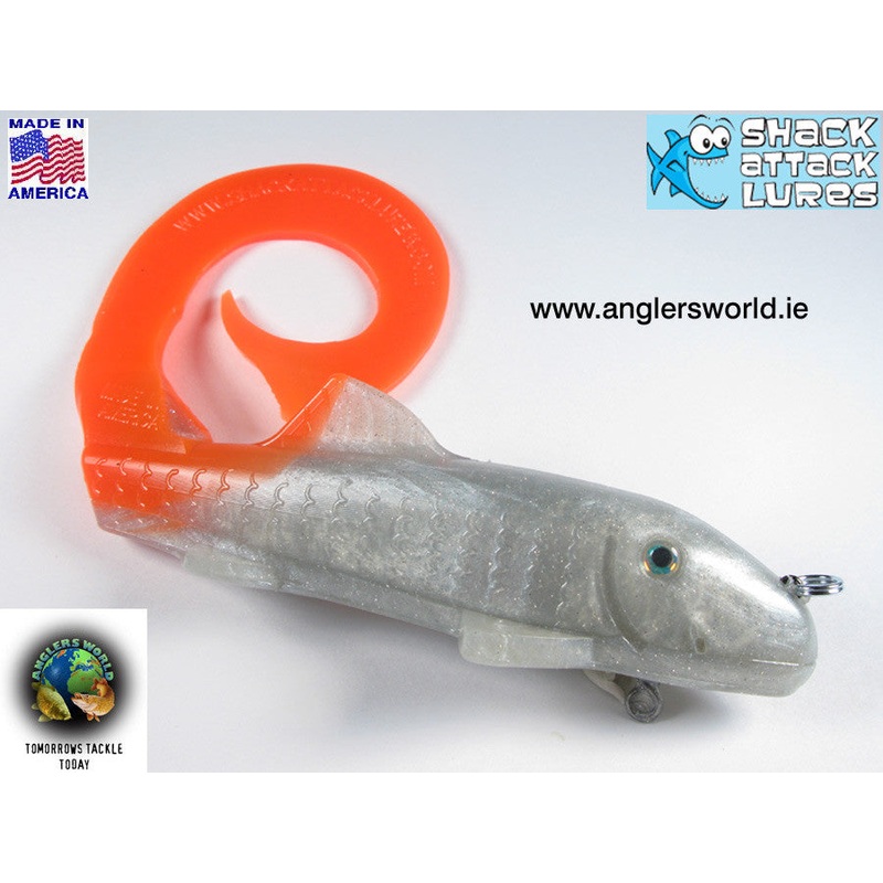 Shack Attack Curly Sue Softbait Lure - Roach (Silver/Orange)Sizes : 6" & 9"The 6" Curly Sue is perfect for times when predators are chasing smaller meals.The 9" Curly Sue sinks at approximately 1ft per second and can be fished at any d