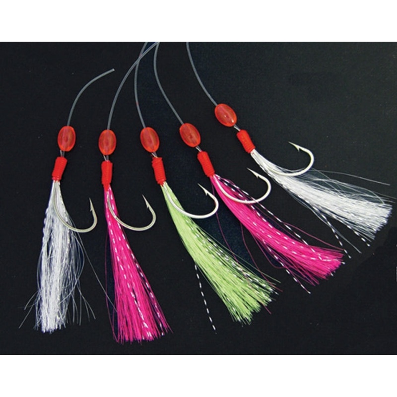 Multi-coloured mackerel basher rig, this one can't fail to catch. 5 hook rig. Mainline 40lb Hook Size 1 x 5
