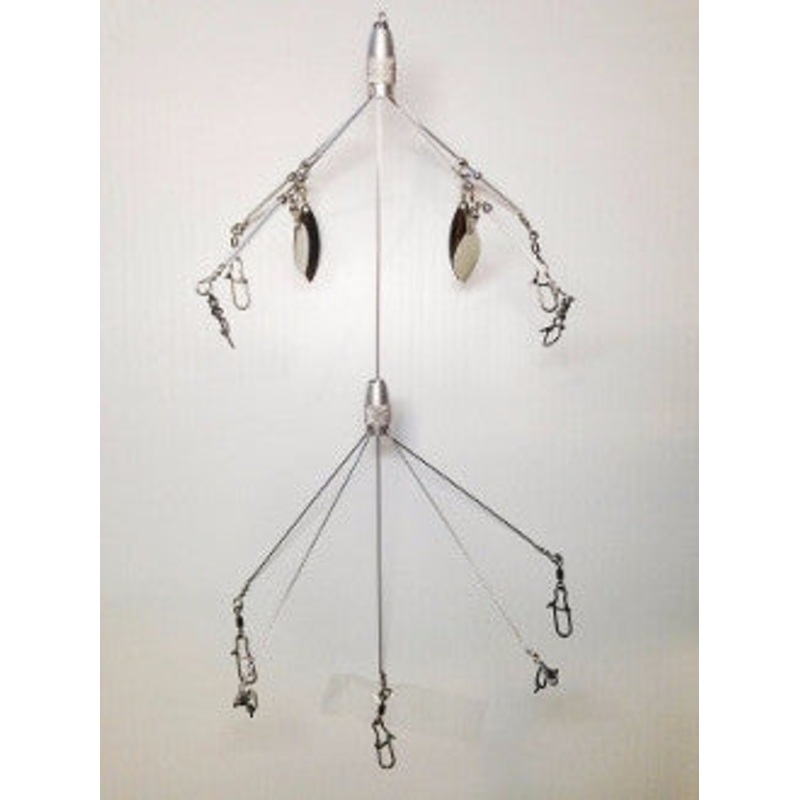 Arms are made from high-quality stainless steel wire. The lower portion of this rig includes 4 nickel plated blades designed to attract the attention of more fish.