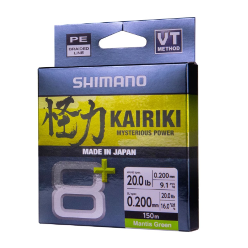 Shimano Kairiki 8+: Experience the next evolution in fishing technology with Shimano’s Kairiki 8+. Featuring a renewed, silicon based, three-layer coating and utilising the new standard of Izanas material, it offers superior water repellency and durability. Meticulously designed tension ensures precise control, ideal for all conditions. Available in multicolour and “Mantis Green” options. Explore Kairiki 8+ and raise your fishing game today.