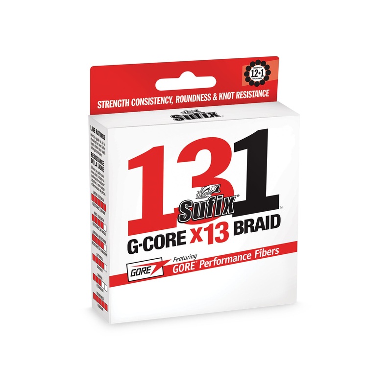 Features: Sufix 131 Braid is a new 12-carrier braided fishing line that uses 12 HMPE fibers and 1 GORE Performance Fiber in the line's core. Japanese-inspired construction offers optimal roundness and reduced internal abrasion. Consistently strong construc
