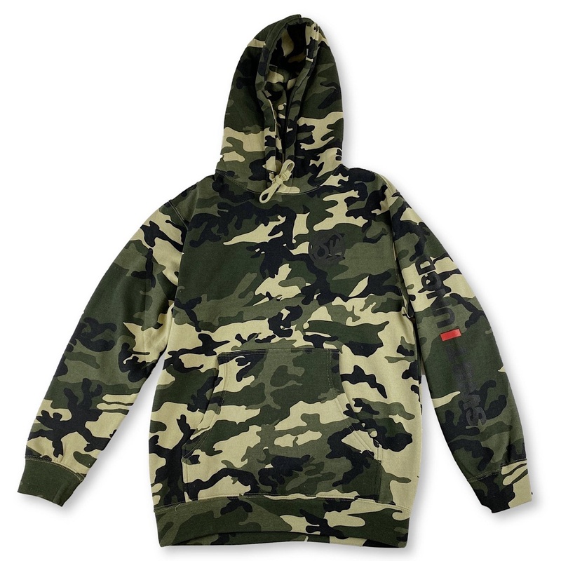 Swimbait Underground Circle Logo Hoodie – Camo.Circle SU logo screened on the front left. Fleece lining. Initials Logo Left Sleeve. Hero or Zero Back Neck Hit. Drawstring hood. Kangaroo pocket. Cuffed long sleeves and hem. 75% cotton/25% polyester. Machine wash. Imported.