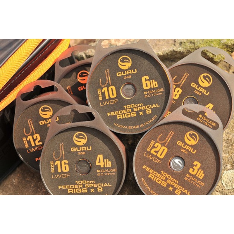 Top quality ready-tied rig for feeder fishing Light Wide Gape Feeder hook pattern Tied on 100cm of superb high-tech Japanese N-Gauge mono Incredibly strong, low diameter and super clear Supplied on an EVA spool Perfect for many types of feeder or bomb fish