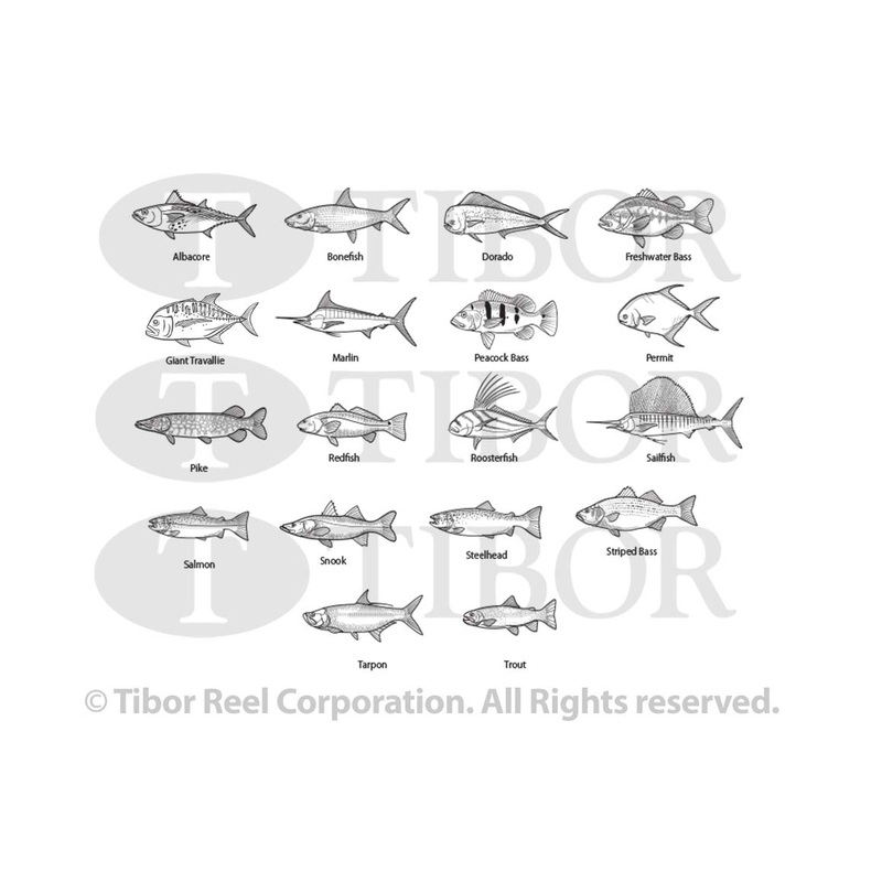 In addition to our colors, you can take the expression ofyour passion for flyfishng a step further with a choiceof 16 exclusive gamefish images. For those fortunateenough to have accomplished it or those striving to,we also offer grand slams editions. A single gamefishengraving is an additional $70.00. A grand slam is anadditional $130.00.Please note: only a single gamefishengraving will fit on a Signature Reel. Gamefish Engravings are available on NEW Tibor Reels only.