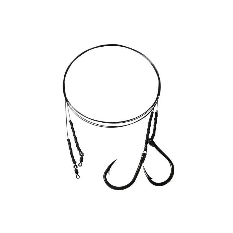 A new product from R&R Tackle – When trying to pursue toothy fish or even billfish these high quality titanium leaders are the best. Approximately 36 inches long, using a high quality stainless steel crane swivel, they are available with a Mustad 39938 6/0 circle hook, a 4/0, 6/0, 7/0, 8/0 Mustad Big Gun J hook and a size 6 Mustad 4X strong treble hooks. The 8/0 J hook rig comes with 50lb titanium.