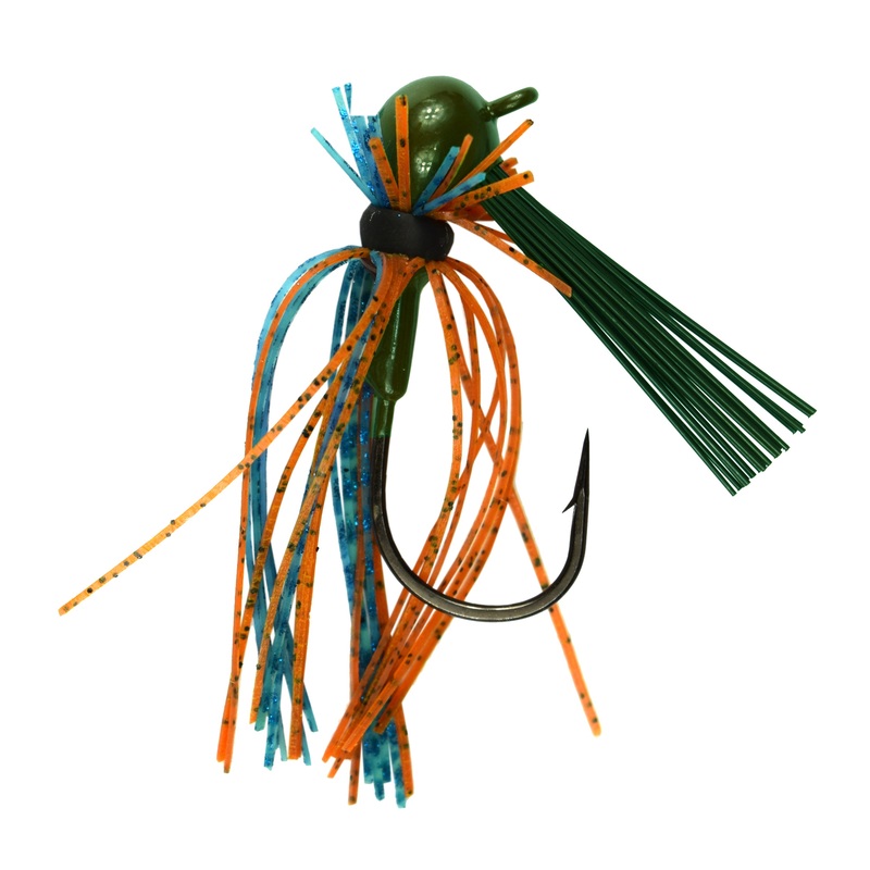 2 Jigs per Pack, Flat Living Rubber Skirt, Super Sharp Mustad Hook, 60 Degree Line Tie, Round Ball Head