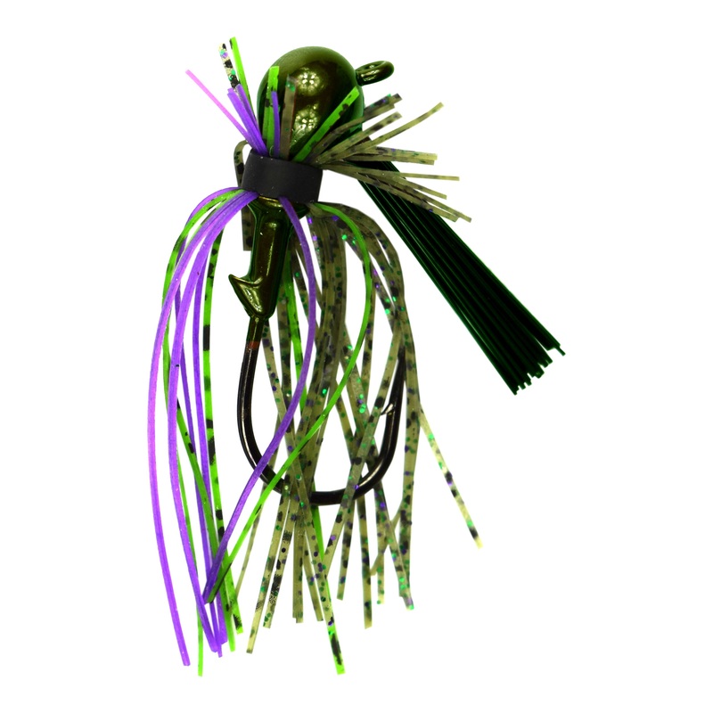 2 Jigs per Pack, Flat Living Rubber Skirt, Super Sharp Mustad Hook, 60 Degree Line Tie, Round Ball Head
