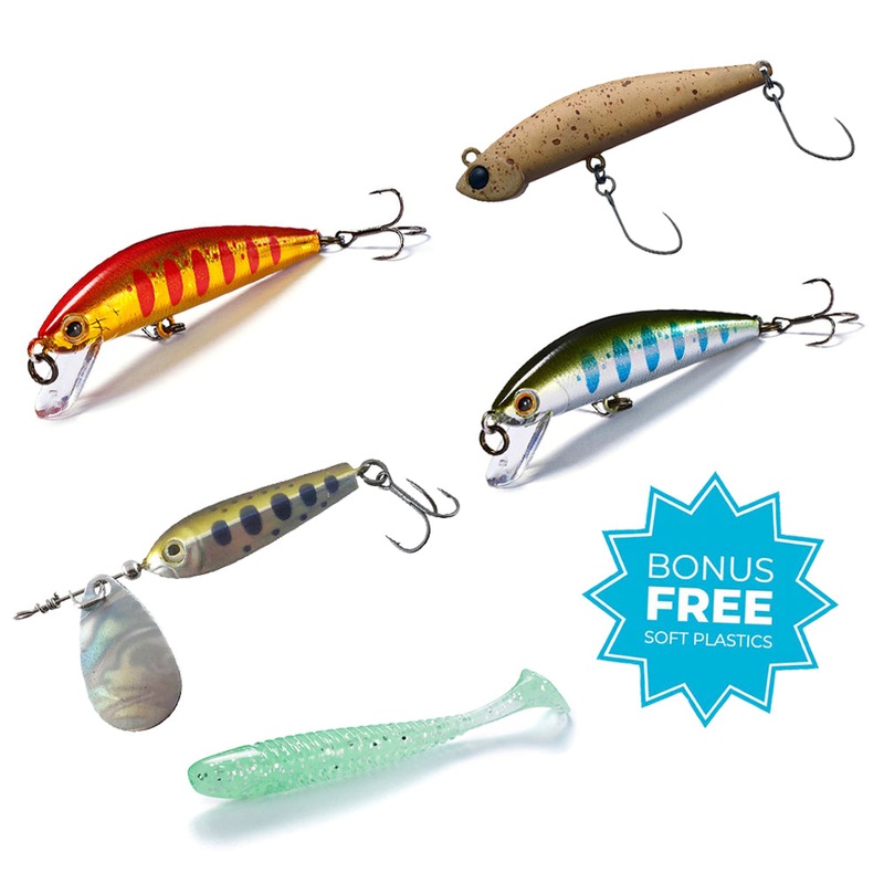 This Trout Lure Pack is the perfect mix of lures for targeting Trout. It has a mix of floating and sinking options each with their own unique features that attract Trout different ways, plus a bonus FREE pack of soft plastics that they love too.