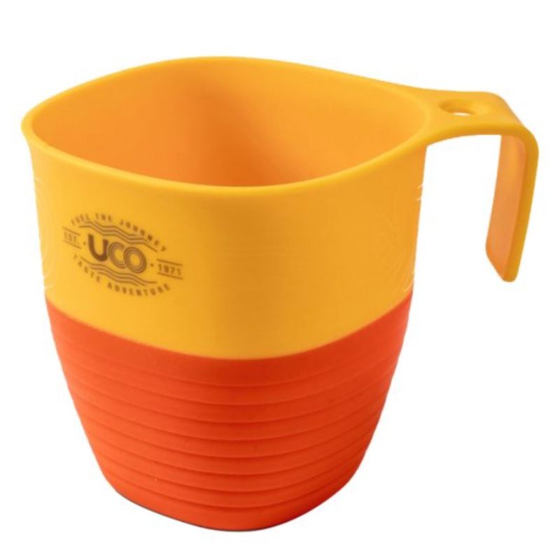 The UCO Camp Cup is a compact drinking vessel designed for adventure. The flexible TPE base stows within the rigid rim and pops out for a sturdy and functional camp cup. The ergonomic handle is comfortable to hold and even has a carabiner attachment hole so you can clip it to your bag when on the move. The cup works great for piping hot coffee to ice-cold spring water and any beverage in between.