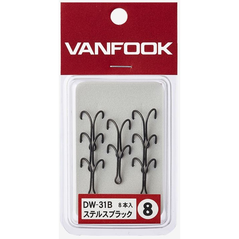 Vanfook DW-31 W Hooks are constructed from double standard wire and are very sharp. They are ideal for use reducing snagging and are ideal for use on blades. Sizes:1, 2, 4, 6, 8, & 10 Made in Japan