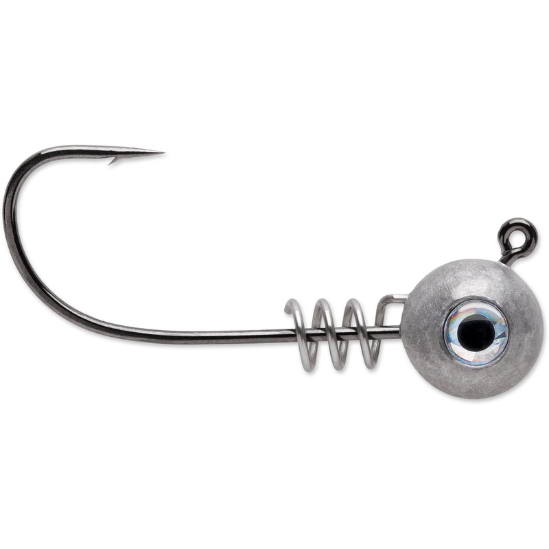 Features: The VMC Hybrid Swimbait Jig is a swimbait jighead that utilizes a wider gap and hybrid bend to improve hook sets and bolster overall hook strength. Wide diameter spring keeper securely attaches your swimbait of choice. Unpainted lead head with em