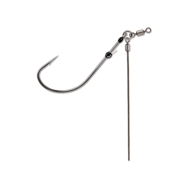 Built around a solid, one-piece ring, it features a heavy-duty 3-degree offset worm hook with a resin closed eye. Attached with a premium rolling swivel at the bottom is a 2 1/2 inch open-wire leader that allows you to completely customize your rig. Add your favorite weights, beads, and clackers to optimize your presentation for current conditions. Pitch it, flip it, or cast it, this bait excels at any, and unlike a traditional dropshot rig, the wire leader doesn’t collapse on itself, meaning your free to explore the bottom all while your bait swings freely above it.
