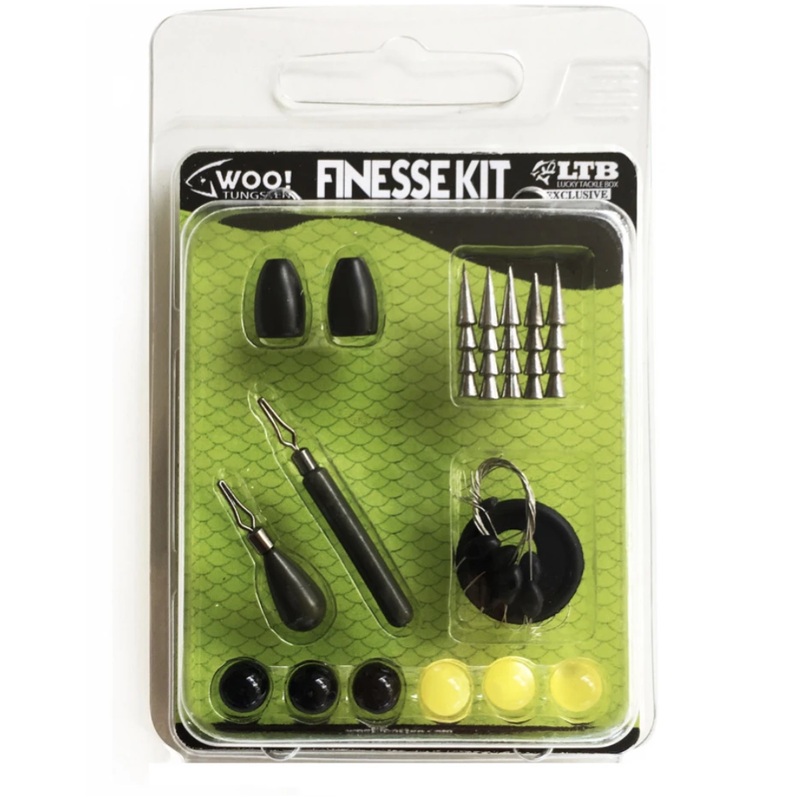 Woo! Tungsten Finesse Kit Looking to get loaded up with everything you need to finesse those giants into biting? Look no further than the 21 Piece WOO! Tungsten Finesse Kit. Product Description: 2 - 1/8 oz TungstenFlipping Weights 1 - 1/8 oz INVISASHOT Dro