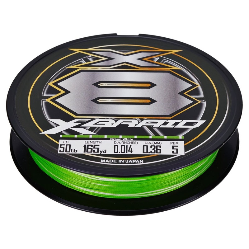 Featuring a proprietary WX weaving process that creates nearly 50 weaves per inch, theXbraid X8 Braided Line Green Whiteis a tightly woven 8 strand braid designed for maximum strength and performance.Providing increased abrasion resistance and enhanced sensitivitythe X8 Braid gives anglers confidence to fish around heavy cover and structure without fear of breaking off or damaging their line.